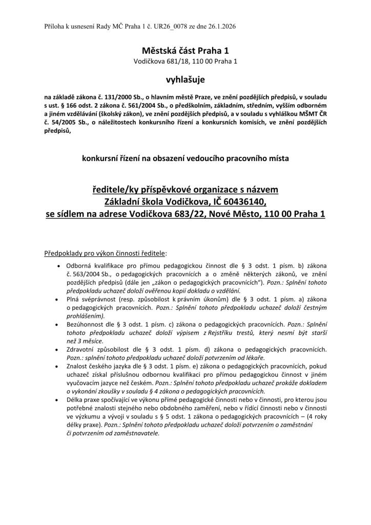 Konkursní řízení ředitel ZŠ Vodičkova_ÚMČ Praha 1 Typ: PDF dokument, Velikost: 250.02 kB