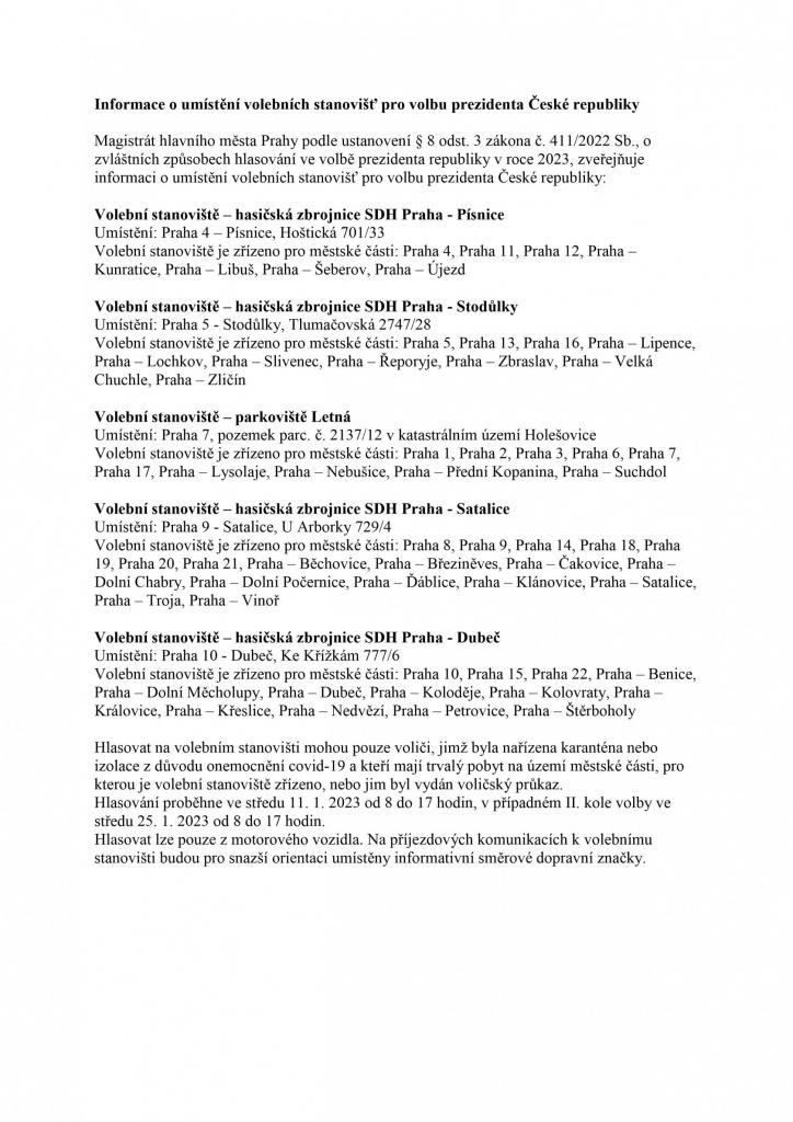 Informace o umístění volebních stanovišť pro volbu prezidenta České republiky: