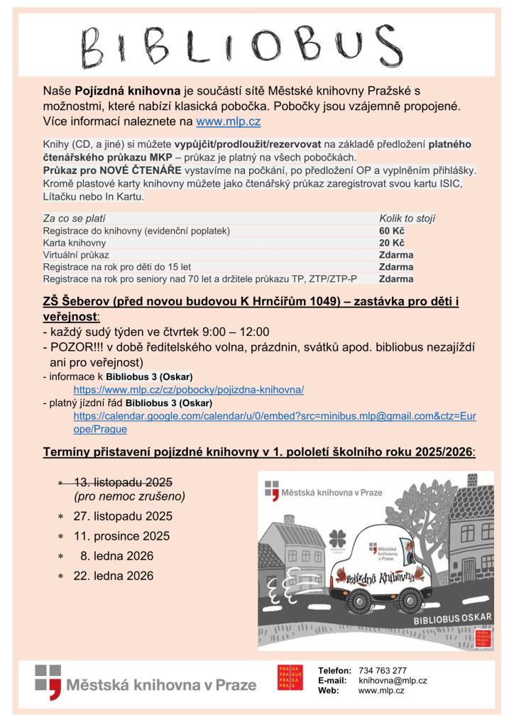 Termíny přistavení pojízdné knihovny v 1. pololetí školního roku 2025/2026: