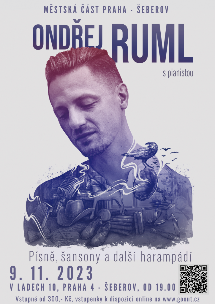 Městská část Praha – Šeberov si vás dovoluje pozvat na koncert Ondřeje Rumla s názvem „Písně, šansony a další harampádí“ ve čtvrtek 9. 11. 2023 od 19 hodin v šeberovském Kostele Církve bratrské V Ladech 10 v Praze - Šeberově.