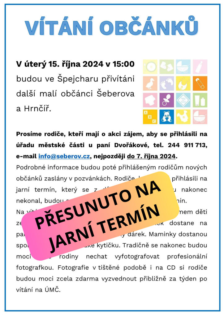V úterý 7. října 2025 měli být ve Špejcharu přivítáni další malí občánci Šeberova a Hrnčíř.
